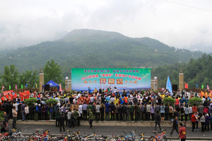 2013年武隆县芙蓉湖户外运动比赛于昨日上午在武隆县石桥苗族土家族乡开赛。与举办了多届的中国国际山地户外运动公开赛不同,本次户外运动比赛走平民路线,吸引了600多位普通市民参与其中。