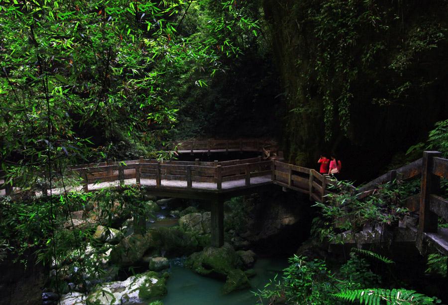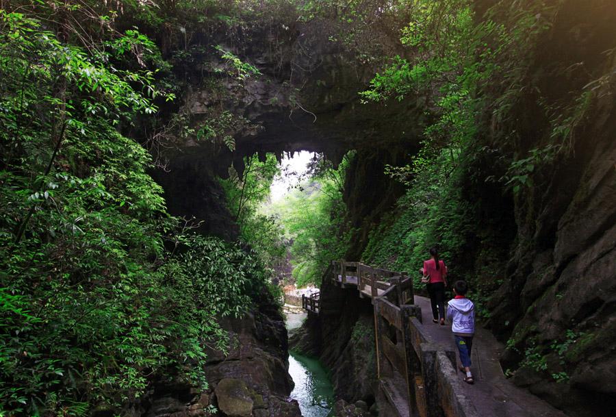 龙水峡地缝,峡谷长5公里,谷深200—500米,规模宏大,气势磅礴。景区玲珑秀丽,风光优美。以峡深壁立、原始植被、飞瀑流泉、急流深潭为其特色。银河飞瀑、九滩十八潭、蛟龙寒窟为其标志性景观。(摄影—王俊杰)