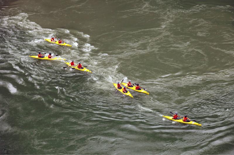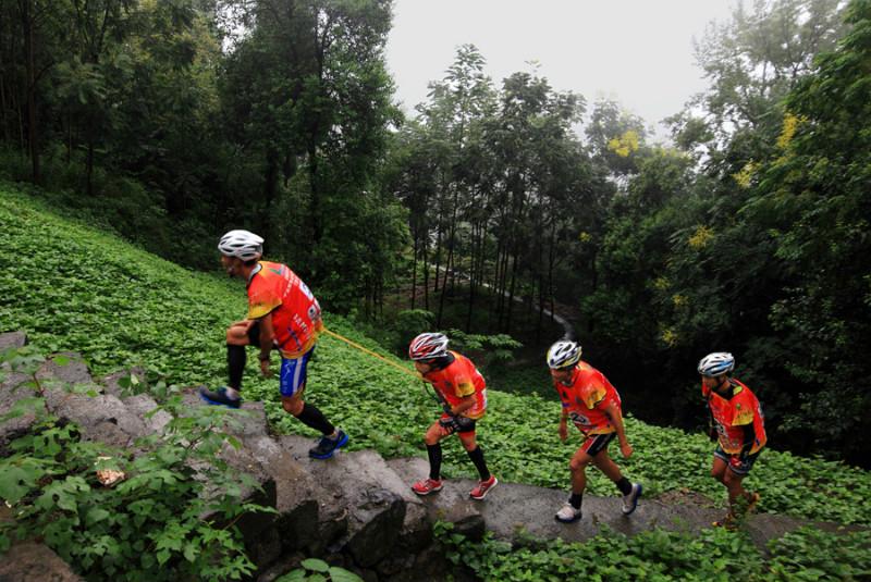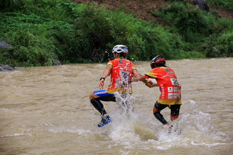 本日赛事由武隆世纪广场出发,途径芙蓉西路、乌江二桥,清水小学,仙女镇,最终到达天生三桥景区,整条路线设置有皮划艇、越野跑、跑骑交替、山地车、越野技能五个项目,总赛程58公里,经过激烈角逐,最终探路者队夺冠。(摄影-王俊杰)
