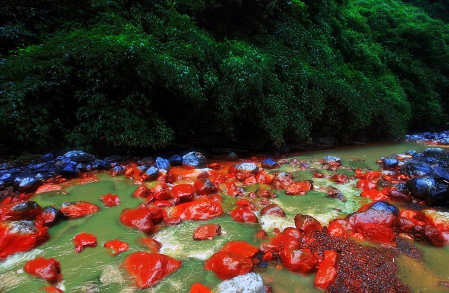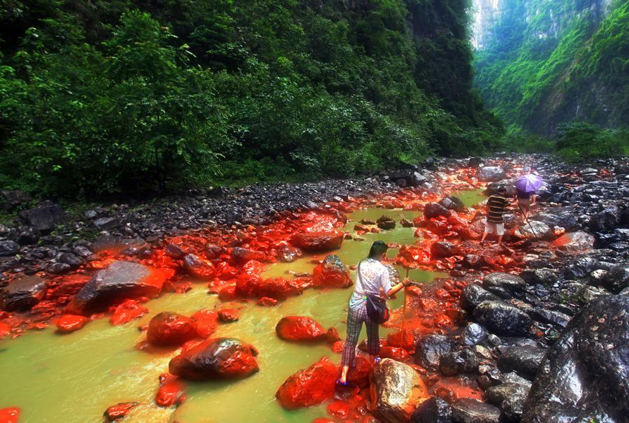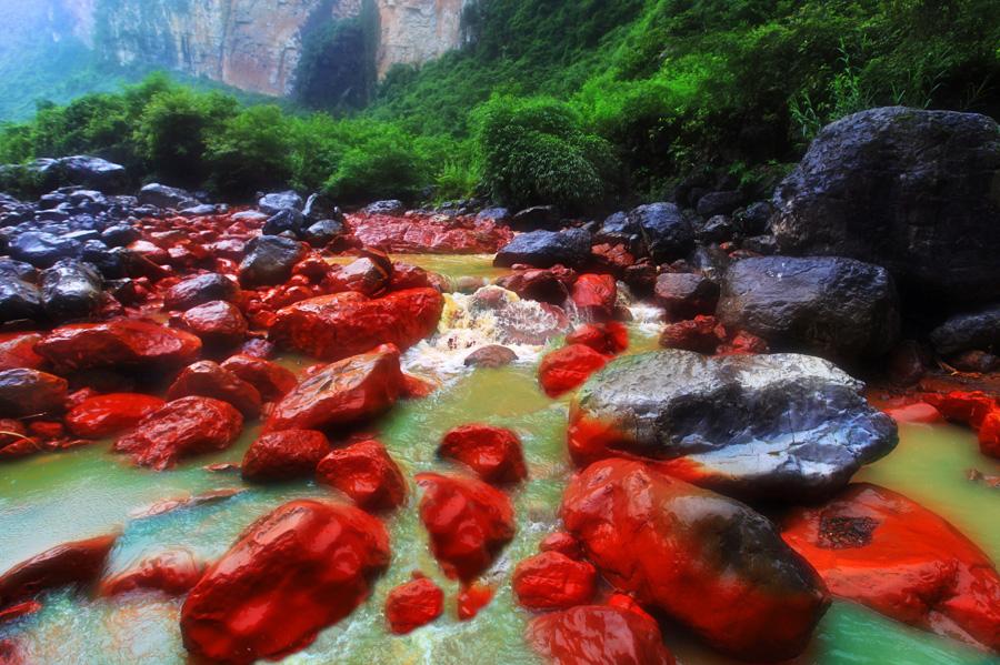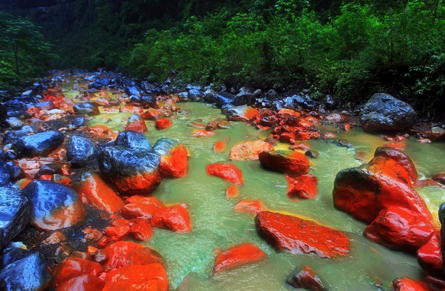 红石沟位于武隆县铁矿乡大洞河峡谷,一条峡谷蜿蜒而去,潺潺溪水“轻柔”拍打着谷底红红的石头安然沉睡,走进红石沟,周围是悬崖、林荫和甜润的空气,一幅静美的天然山水画!