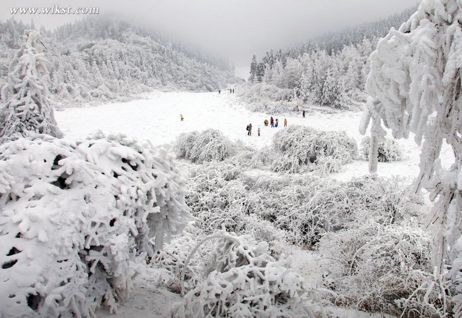 今逢佳节双至,仙女山盖了一层白白的被子,巨型冰舌和玉树琼枝的原始森林共生景象十分震撼,给人梦幻奇妙之感,如此美丽的景色是送给游客最好的新春礼物。