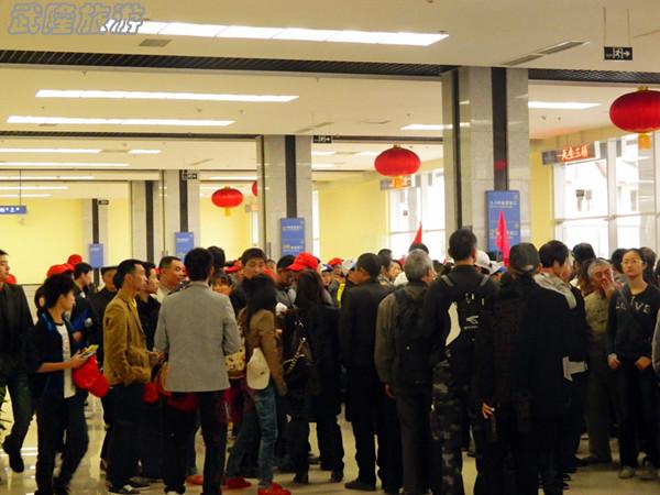 (武隆澳网官方网站网讯)继昨日客流第一波高峰后,武隆游客数量今日再次剧增。记者在仙女镇游客接待中心看到,从早上7:30开始,售票大厅变得熙熙攘攘,大量游客开始购票,已购好门票的游客则排队乘坐景区中转车。