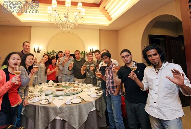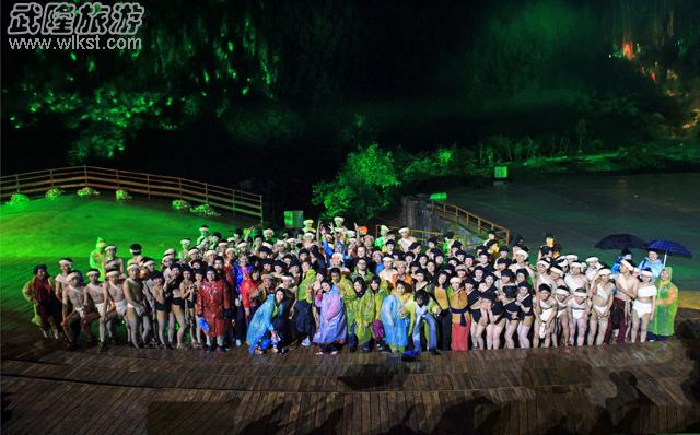 演出结束后,兴奋的外国友人和演员们合影留念。一位外国友人用不太熟练的中文对记者说:“印象武隆太惊人了!张艺谋很了不起!”