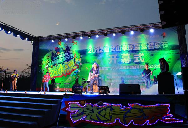 相聚仙女山,共度音乐节。23日,“2012仙女山草原露营音乐节”在仙女山国家森林公园拉开大幕,开幕式上精彩的乐队表演、别具特色的舞蹈表演、包粽子等等趣味活动,吸引了数以万计的游客前来观赏。(摄影——王俊杰)
