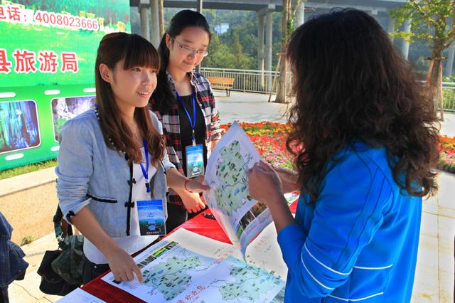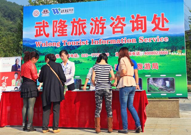 据了解,今年中秋国庆节假日开始,7座及以下小型客车免通行费,全国顿时掀起自驾游高潮。为切实做好节日期间澳网官方网站安全接待工作,武隆喀斯特澳网官方网站集团公司联合武隆澳网官方网站局在中秋国庆节期间开设 “武隆澳网官方网站咨询服务站点”,分别位于武隆县城下高速公路转盘、仙女镇游客接待中心等处,向游客发放武隆澳网官方网站景区导视图、武隆酒店及家庭旅馆登记资料、各精品景区及印象武隆的图片与文字介绍资料,从吃、住、游、购、娱等全方位为游客提供咨询服务。