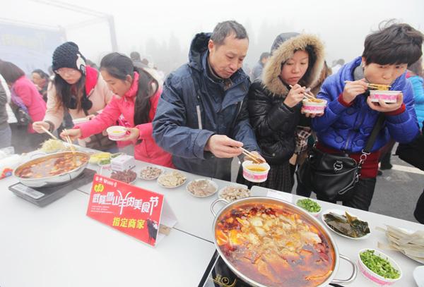 开幕式上,武隆13家羊肉餐饮商现场为游客烹饪各类武隆特色高山羊肉,香酥嫩脆的烤全羊、浓郁飘香的粉蒸排骨、不膻不腻的羊肉串、回味悠长的羊杂汤等无一不牢牢拴住游客的胃,一出炉便被一“抢”而空。