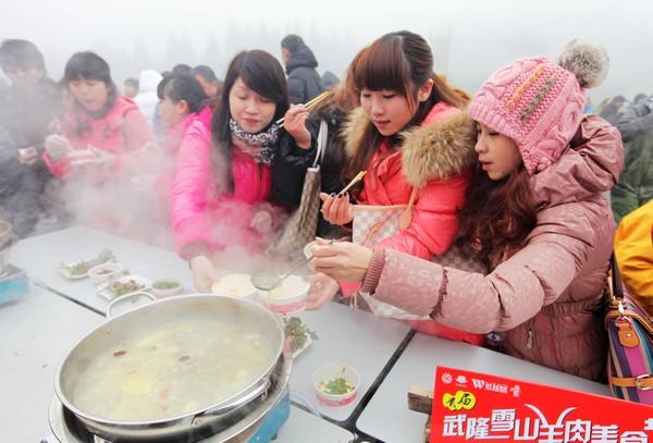 “我本人十分热爱羊肉,特别是冬天经常约朋友一起吃羊肉。其实武隆我们都已经来过很多次了,而这次就是专冲着武隆的羊肉来的,刚在那边拿到一大块烤全羊,入口感觉肉质香脆鲜嫩,不肥不腻,膻味也小,果然上佳。如果是下雪天,吃烤全羊就更有意境了,一群人围着篝火,啃着羊肉,想想都觉得向往。等到仙女山下雪的时候,我们一定还来。”来自重庆市区的张先生一边吃着羊肉,一边接受记者的采访。