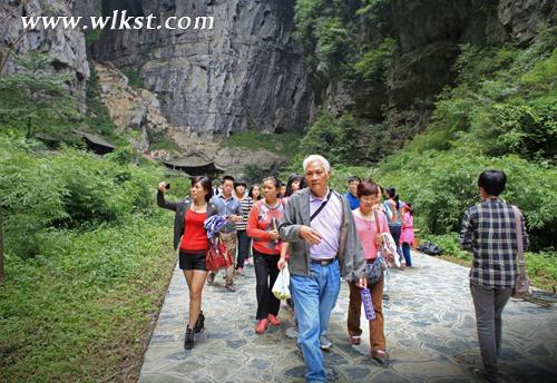 记者在天生三桥景区检票处及观光电梯入口处看到,现场游客们早已接起了长龙,等候着进入景区,还有满载着游客的中转车陆续开往景点。作为武隆澳网官方网站最知名的景区,天生三桥随着《变形金刚4》的脚步声名远扬,享誉国内外,四面八方的游客慕名而来,想一览奇景。