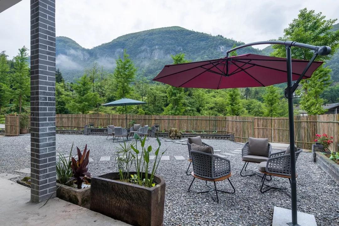 木根铺精品民宿共三栋14间房,房间设施都是五星级酒店标配(优质棉麻拖鞋、ora2皓乐齿牙膏、JNBYHOME贡缎纯棉四件套、鹅绒枕芯被芯等)。院坝里的花草以及遮阳的休闲区,让人不禁想泡上一壶浓茶坐在这里享受惬意的午后阳光。