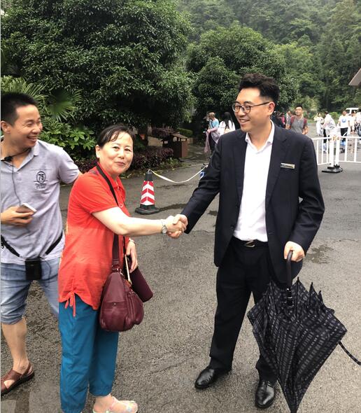 王兵老伴与龙水峡地缝景区出口管理员涂金川握手,表示感激!