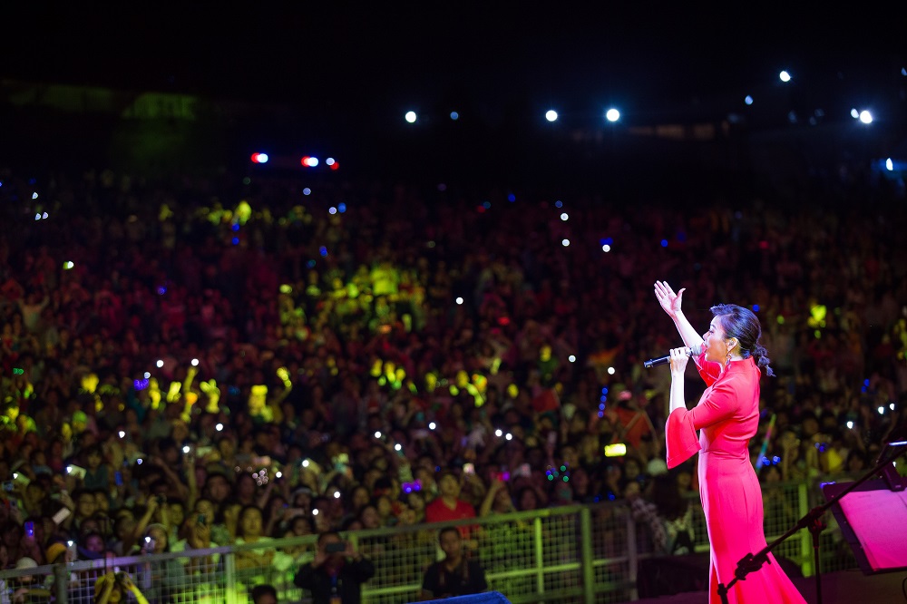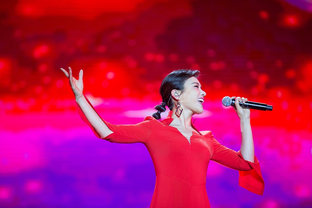 仙女山草原露营音乐节作为武隆打造的一台盛夏狂欢盛典,2010年起每年一届,至今年已经是第10届,昨天晚上可以说是10周年庆典了。陈思思也非常默契地选择以非常喜庆地红色长裙登台献唱,向祖国告白的同时,对仙女山表示庆祝,真可谓用心十足。“在美丽的仙女山唱歌,感觉自己也成了仙女。”演出现场,陈思思对观众打趣着说。