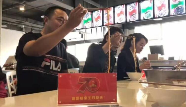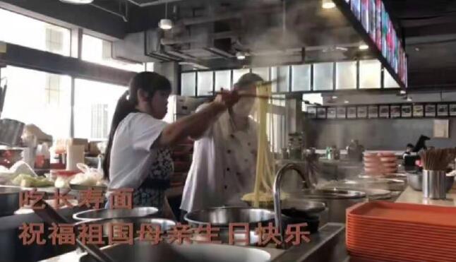 吃一碗长寿面,祝福祖国母亲生日快乐。MV以武隆景区员工们同吃长寿面画面开启,寓意祖国国泰民安,繁荣昌盛。“我和我的祖国,一刻也不能分割,无论我走到哪里,都流出一首赞歌……”伴随着歌曲《我和我的祖国》旋律,武隆景区员工挥舞着手中的五星红旗,大声歌唱,表达对祖国最诚挚的祝福。