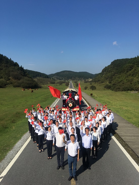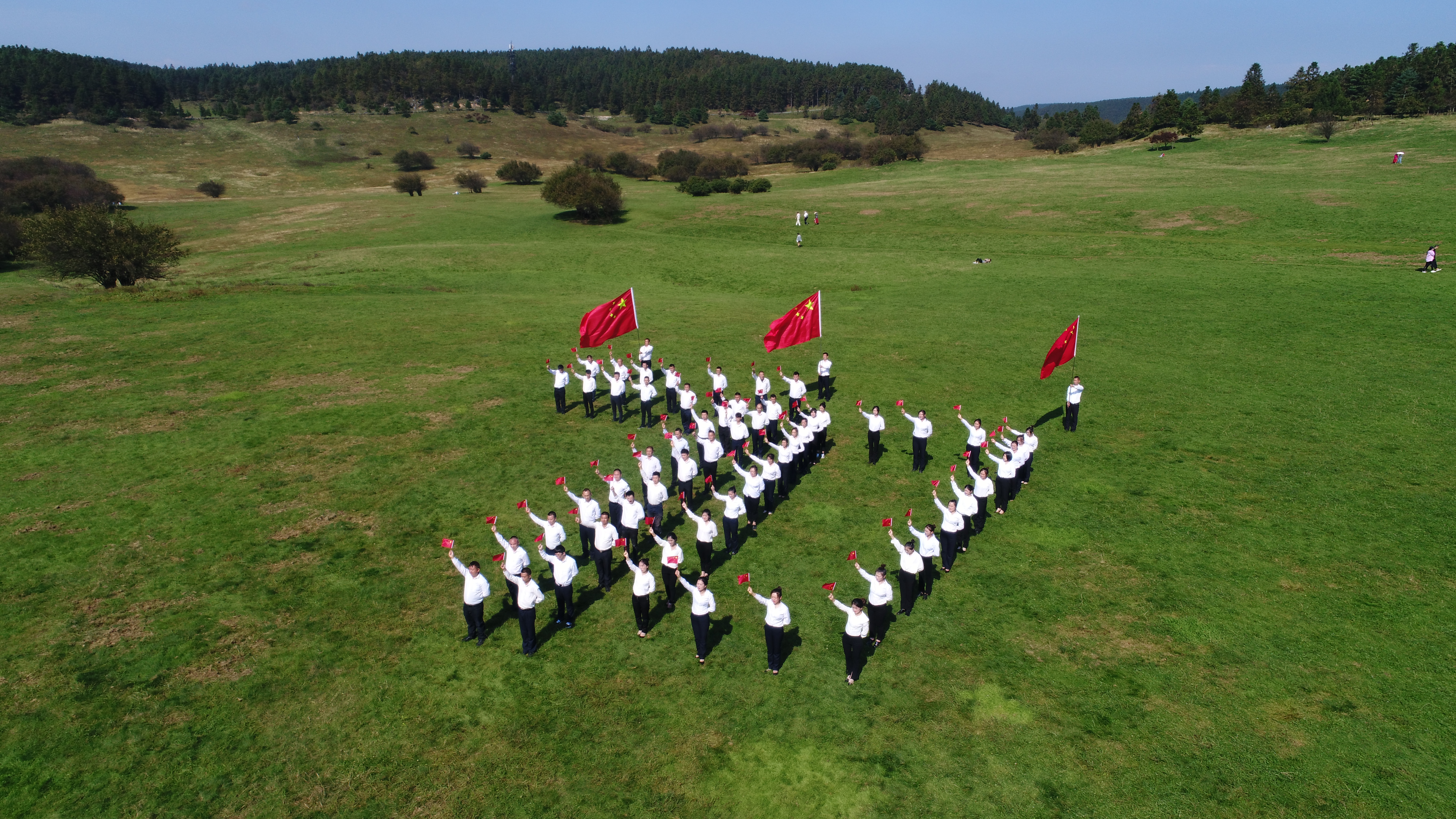 武隆景区员工仙女山大草原排列成“70”字样(图/王俊杰)