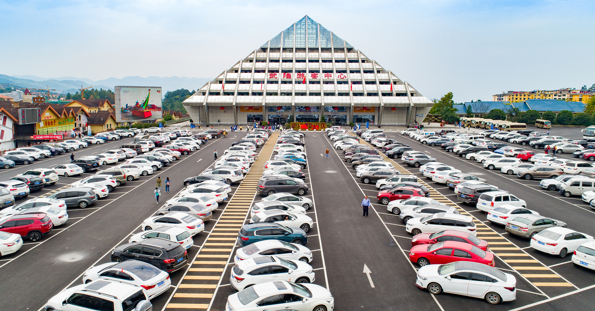 10月1日,武隆景区迎来了国庆第一波高峰游,仙女山游客接待中心人山人海,停车现场井然有序。