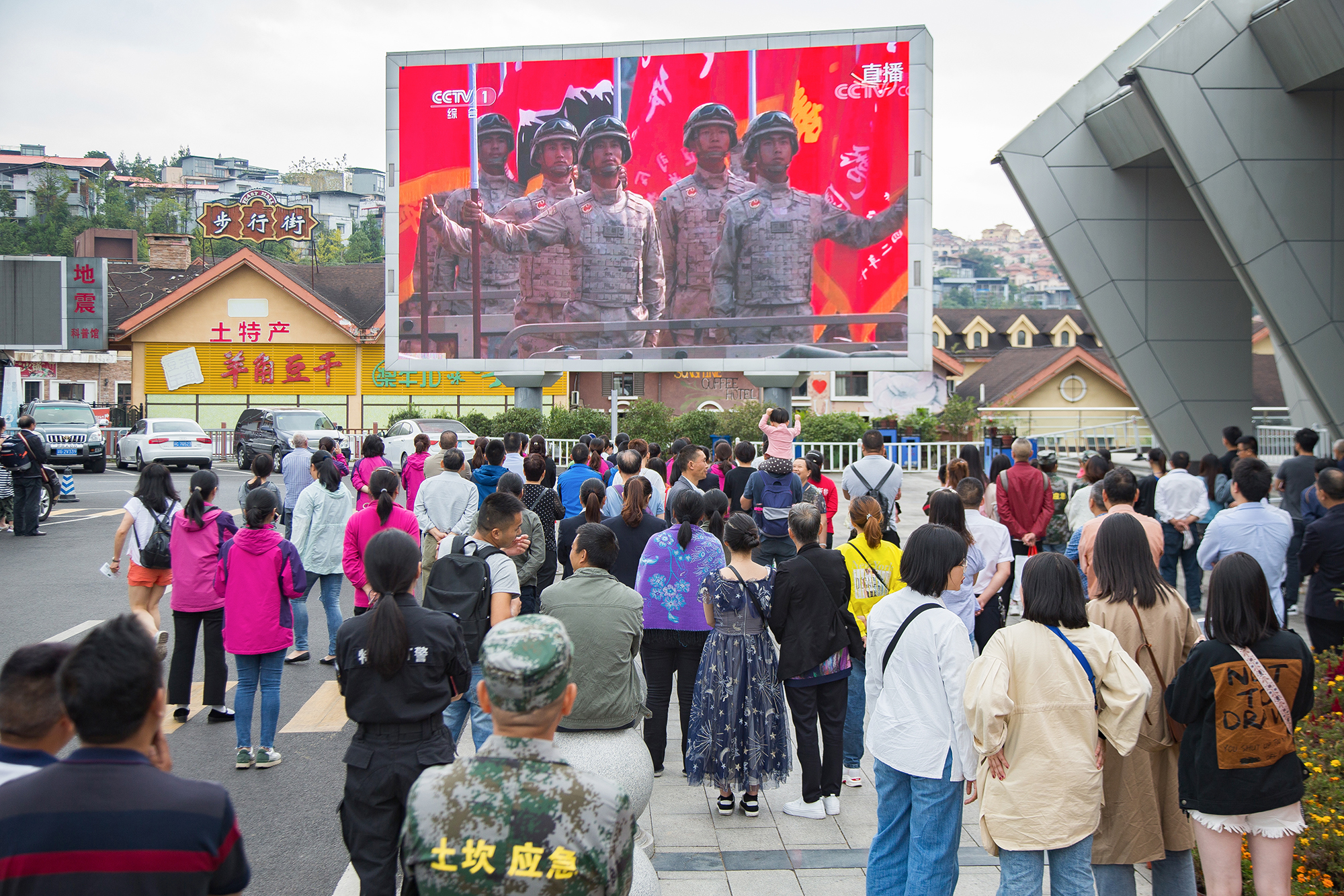 自驾游?随团游?当你还在犹豫选择何种出游方式时,其他游客已在仙女山游客接待中心LED大屏观看国庆阅兵式,为中华人民共和国成立70周年而喝彩啦!一位来自万州的男子向记者表示:“我们一家三口到达游客接待中心时,LED大屏正在播放国庆70周年大阅兵,我们小两口特意停下脚步领着小孩儿观看阅兵式,希望可以从小培养他的爱国意识。”
