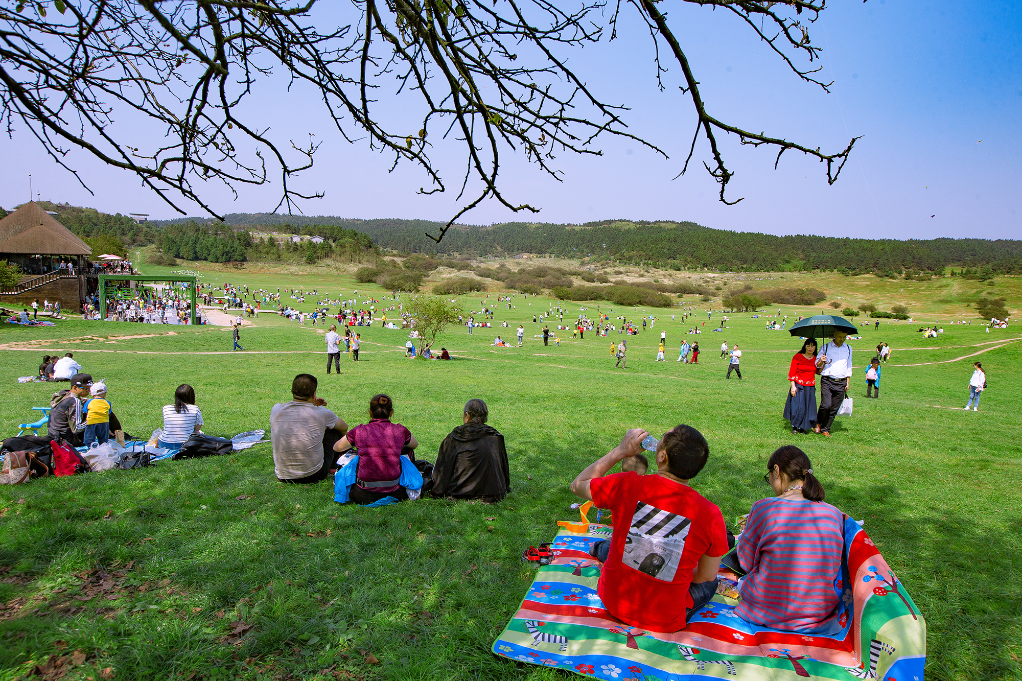 游客在仙女山大草原尽享悠闲度假。