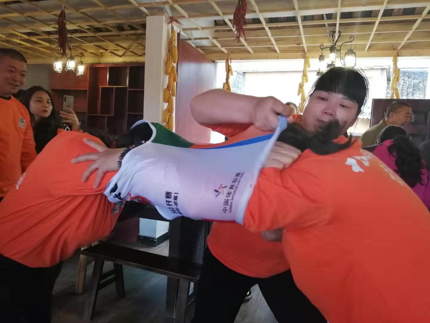 由于当日上午细雨不断,因此,原本安排在上午的登山活动被调到了下午。上午,大家在主持人的带领下被分为6组(一组10人)分别进行了“扔沙包”、“摸石头过河”、“穿衣服接力”三项趣味活动,在活动过程中大家皆全力以赴,毫无懈怠之意,与队员积极配合共同完成每一项活动,力争为自己的团队取得好成绩而贡献力量。