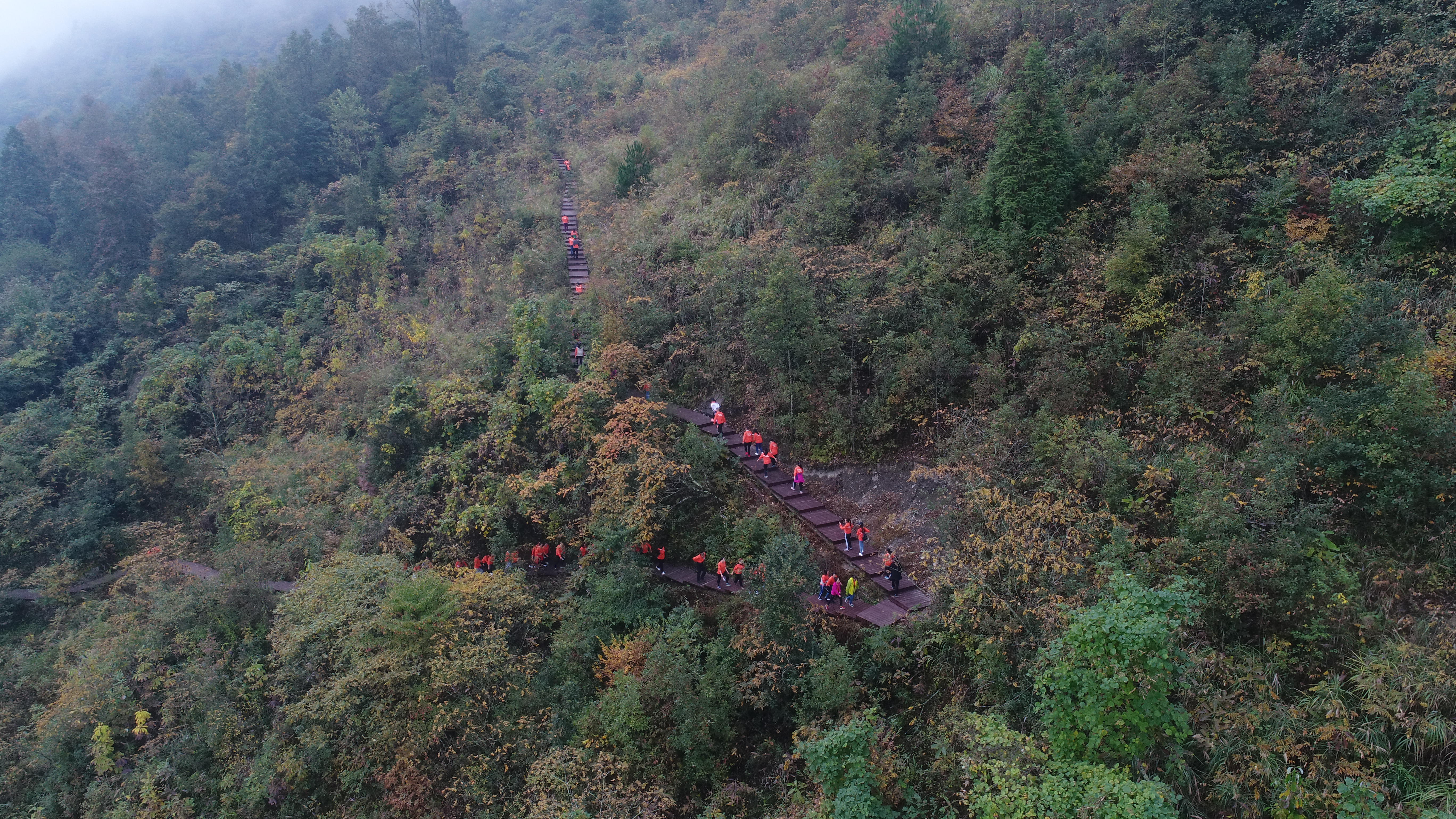 下午天气转晴,一点二十分,登山爱好者们先是以小组为单位在天池苗寨广场拍照打卡,然后向人头山出发,在攀登途中,大家激情饱满、勇往直前,即使有的队员有些体力不支,也没有退缩的念头,大家相互鼓励、相互帮助,在三点半之前全体攀登者成功抵达山峰并返回起点,最后全体队员拍照合影寓意本次活动取得圆满成功。