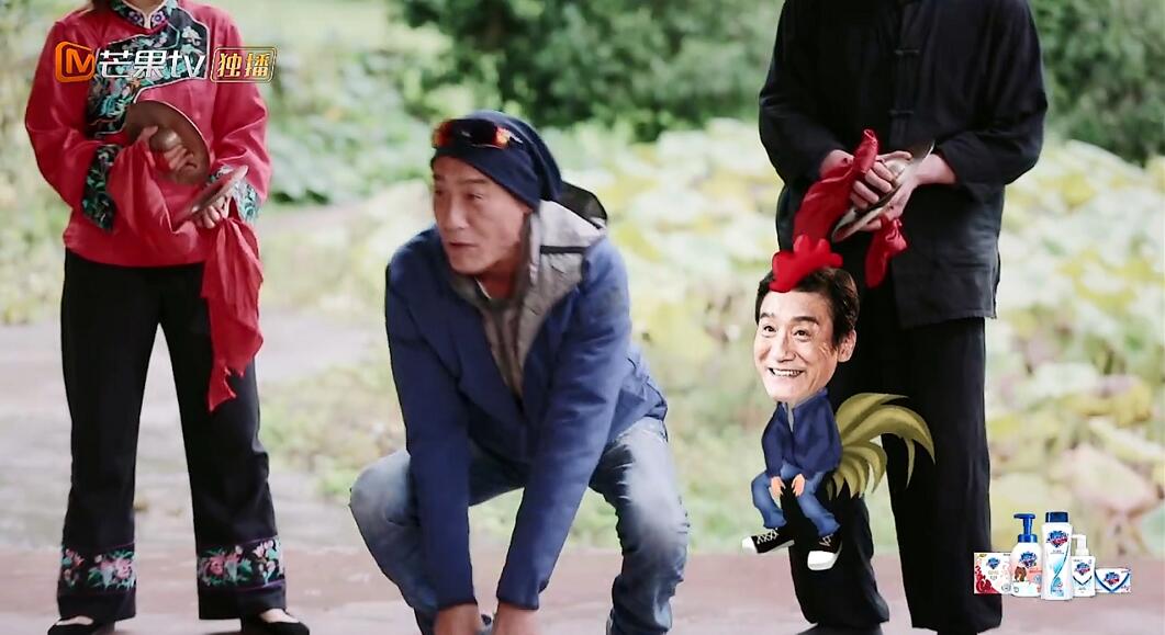 “下蛋的鸡正在攀比,谁的蛋下得大……”有趣而又接地气的表演结束,身为影帝的梁家辉安耐不住内心的表演欲,主动请缨表演一个“公鸡下蛋”。蹲下模仿公鸡的走路姿态,伴随一阵叫声往前行,调侃“这胎不会难产”,随后终于成功产下一枚“事先准备好的鸡蛋”。同时不忘公鸡和母鸡的分工,称:“让母鸡去孵去呗。”幽默有趣的表演深得父子们欢喜。