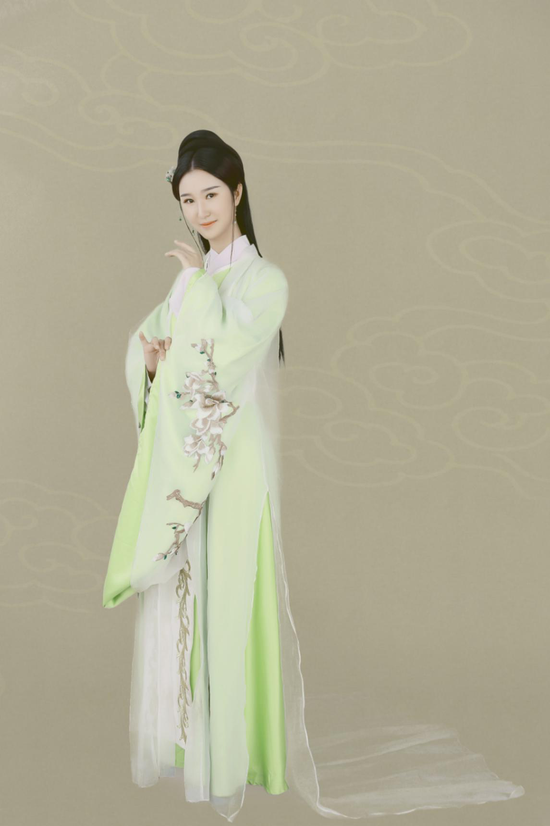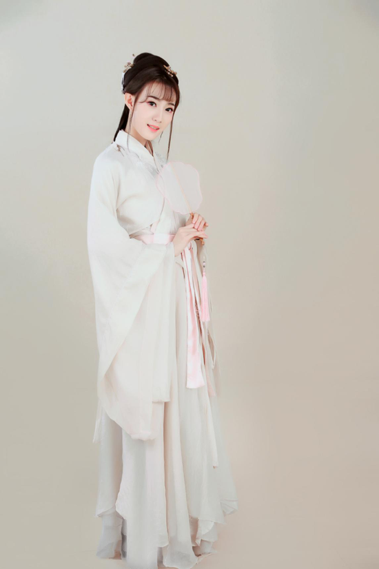 复刻于扶摇众多造型中较为淡雅的一款,陈东阳演绎出婉丽清新的感觉。上身束腰设计,下半身是优雅轻盈的蓬蓬裙,搭配腰间甜美蝴蝶结,显得人物清雅无比,少女气十足。团扇轻摇,美人袅袅,扶摇摇身一变灵动脱俗的宇文紫。