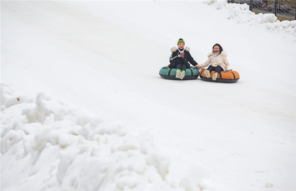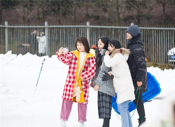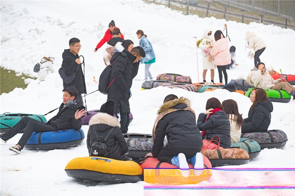 大巴车抵达武隆景区后,车上一行人先是直奔仙女山滑雪场展开了他们这个冬季的第一场雪上运动,双板滑雪、单板滑雪、雪上飞碟(雪圈)、滑雪撬、霹雳板滑雪……,不论他们是情侣,还是闺蜜或基友,都在冰雪中激情狂欢。一位美女大学生表示,原来南方的雪上运动也可以玩得不亦乐乎,真是太棒了。