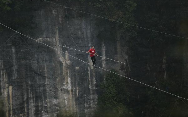 而要说如何更真切体验天生三桥的震撼、惊险、刺激,2016年3月30日,三位全球顶尖高手同场竞技,在天生三桥300米高的悬崖峭壁间挑战走钢丝,简直令人惊叹到掉下巴。而运动员们在钢丝上的行进速度超快,来自瑞士选手弗雷迪·诺克以42.04秒的成绩跑完300米钢丝,夺得冠军并成功挑战吉尼斯世界纪录,荣获世界最快“钢丝侠”称号,当天央视《吉尼斯中国之夜》还对这场竞技进行了直播。