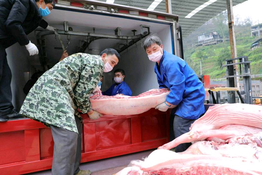 猪肉装箱。