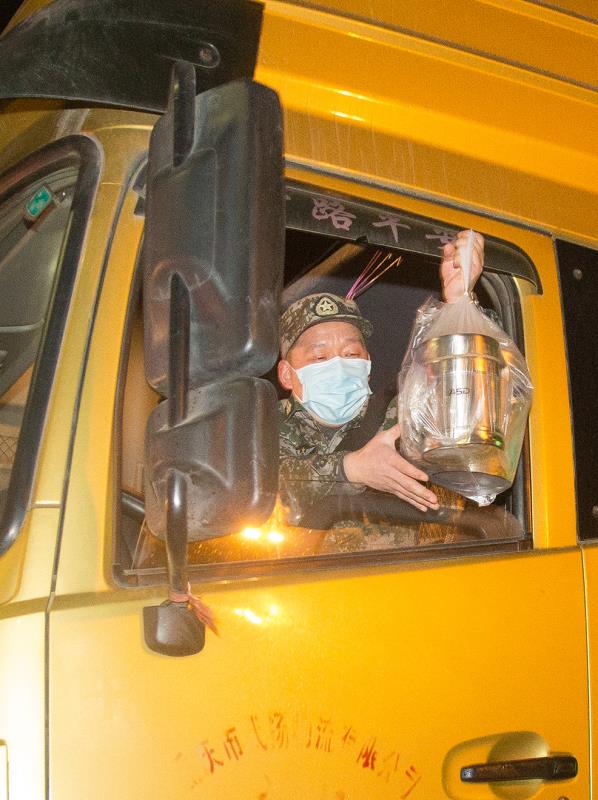 为驾驶员送上热气腾腾的饭菜。