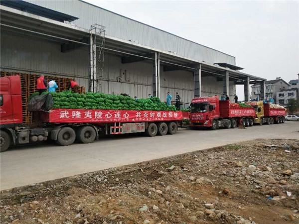 2月13日,根据武隆区委、区政府工作部署,武隆喀斯特澳网官方网站产业(集团)公司委派6名优秀员工,驾驶3辆大货车运送50吨优质高山蔬菜和1.2吨猪肉至新冠肺炎疫情重灾区湖北省宜昌市夷陵区,通过日夜兼程10小时于2月14日凌晨1点43分抵达,与夷陵区红十字会完成物资交接之后,车队马不停蹄地迅速返回武隆。由夷陵区红十字会按照生活物资分配方案,将武隆人民的每一份“爱心”送到最需要的地方,助力取得抗疫的最终胜利。