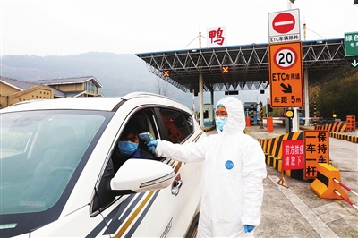 “同志,你的体温正常,谢谢你的配合!”2月20日下午16点,南涪高速鸭江下道口检疫站,一辆小车缓缓驶出收费站,值守医生曾妮忙上前给驾乘人员测体温。