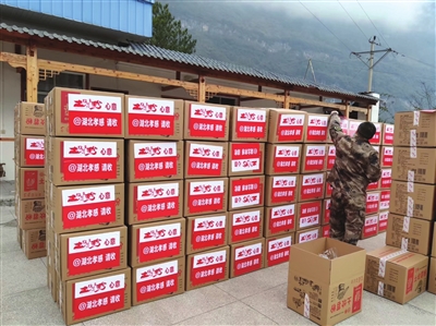 2月23日下午,在土坎镇隆祥农业开发有限公司内,十数名民兵忙里忙外,将一箱箱载满武隆人民爱心的土坎苕粉装车,以运往湖北孝感。