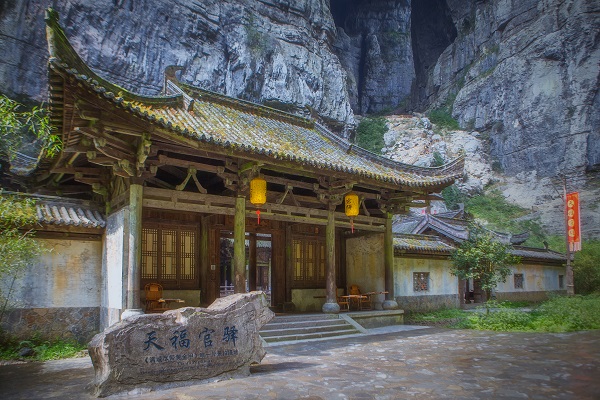 《满城尽带黄金甲》中黑衣人飞檐走壁,空降偷袭古驿站的情景,令许多人记忆深刻。据说,当年(2006年)电影筹划之时,张艺谋亲自前往重庆武隆天生三桥(天坑)实地勘察外景,被天生三桥的绝美风光所震撼,而位于坑底的古驿站对于张艺谋来说相当新奇。最终,张艺谋决定将电影唯一外景拍摄地定于此,为了追求画面精美,完美体现唐代文化,花数百万元重新装饰了古驿站,还从北京空运一辆长达6米的道具马车。