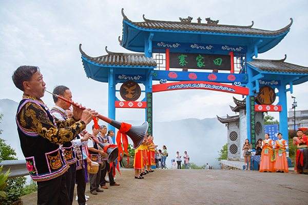 仡佬吹打迎宾、五进酒,当天,从进入寨门开始,热情好客的本土村民便通过一系列传统仪式,让远道而来的游客朋友们感受到浓郁的仡佬族氛围,向他们表示最最热烈的欢迎。