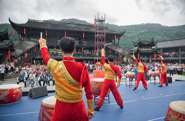 民俗表演《鼓声响山寨》。(摄影/王俊杰)
