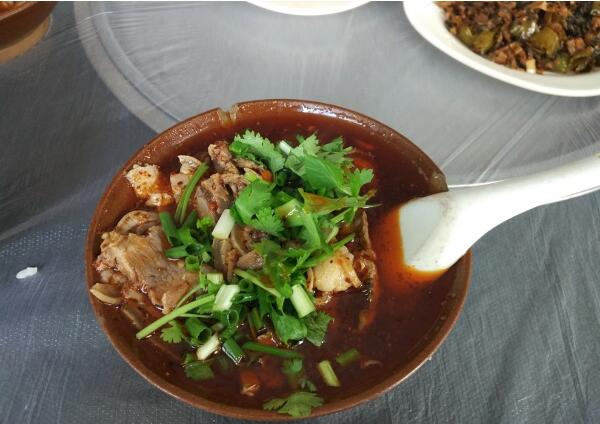 在众多羊肉美食中,碗碗羊肉是以羊肉汤锅演变而来,制作前将羊肉洗净,用开水焯去血水,然后在锅内放入植物油,放入白糖熬糖色,放羊肉炒至上色,倒入砂锅,慢炖一个小时后,加入白萝卜一起炖,等羊肉煮熟起锅装碗,在装碗后加花椒面,葱花,香菜。汤红不辣、原汁原味、纯香不膻,配上地道的老盐菜和泡菜萝卜,味道很巴适。