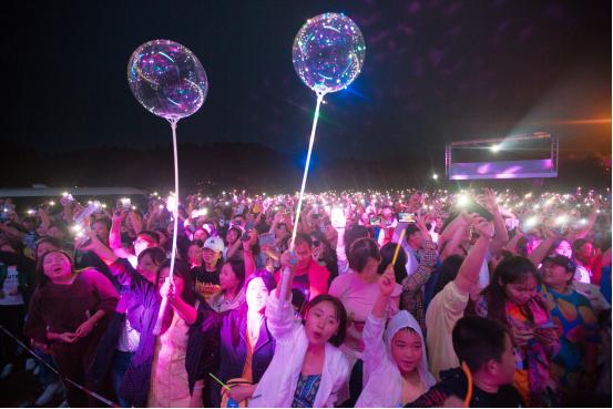 当黑蚂蚁乐队一出场,超炫酷的旋律,爆炸性的表演将整个音乐现场带向了高潮,歌迷们纷纷掏出手机打开手电筒,随着摇摆的手臂晃动,浪漫的点点星光,闪耀整个人潮人海。动感音乐、炫舞激光让夜晚的仙女山化身为一座音乐殿堂。