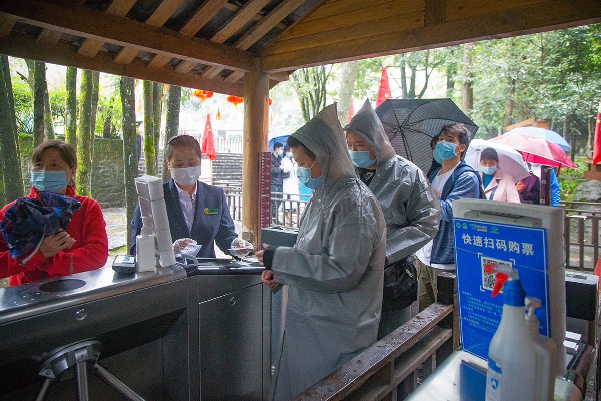 对于没有提前在网络上进行预约的游客,景区在高速下道口等重要交通节点位置,安排工作人员向游客发放宣传单,引导游客通过扫描武隆景区官方购票二维码进行购票,同时做好疫情自我防控。