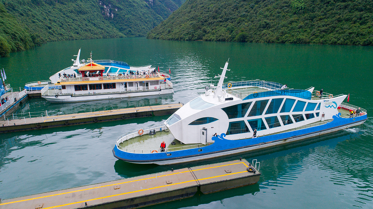 今年7月29日芙蓉江重新开放,在4年的提档升级打造中,芙蓉江新增了9艘寓意“鱼跃龙门,鲤鱼化龙”的鱼龙造型全新游船,美感十足,让游客体验更佳的游船环境。