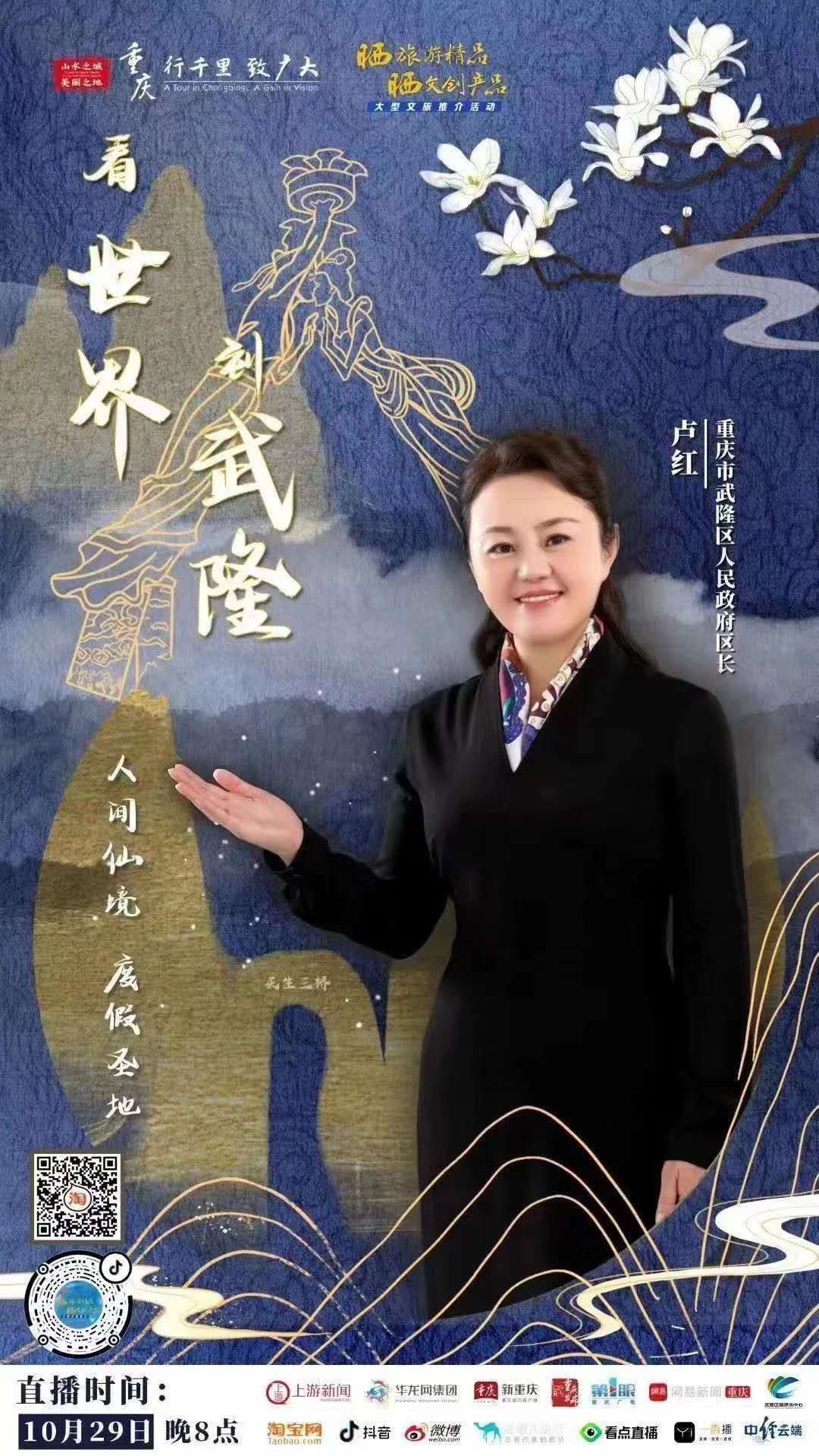 经过5个月的精彩“大秀”,重庆“双晒”第二季终于迎来了压轴大戏,在其它各区县均已完成“双晒”之后,10月29日晚上8点武隆区长卢红将化身“网络主播”和“金牌导游”,在线直播推介武隆精品文旅资源,正式开启武隆“双晒”之旅。