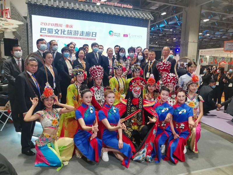 此次澳网官方网站博览会上,四川馆·重庆馆以“巴蜀文化澳网官方网站走廊”为共同主题。当天,四川、重庆两地文旅部门相关领导共同按下启动台,“天府三九大·安逸走四川”、“行千里·致广大”两张文旅名片同时点亮。