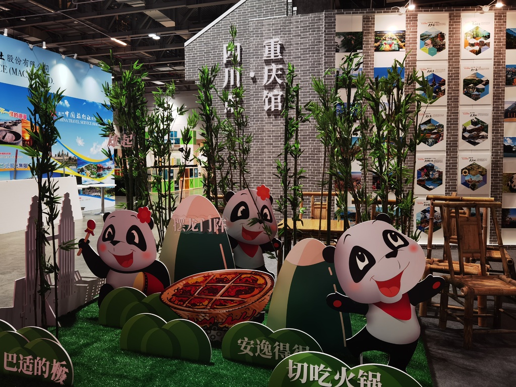 以重庆火锅、四川大熊猫为标志元素的四川馆·重庆馆