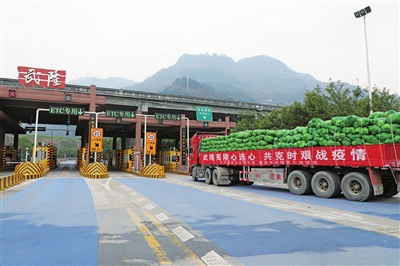 ① 2020年2月13日,满载50余吨新鲜蔬菜和肉类的三辆货车带着武隆人民的爱心,启程前往湖北省宜昌市夷陵区,以实际行动支援抗疫一线。