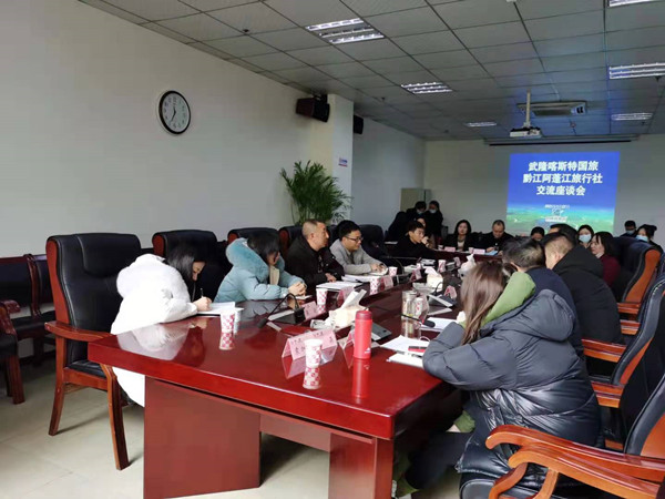 疫情当前,为持续推动澳网官方网站营销工作,1月27日上午9:30,武隆喀斯特国际旅行社和黔江阿蓬江旅行社在武隆召开了合作意向交流座谈会,双方就2021年旅行社线路产品、政策等合作事宜开展洽谈。