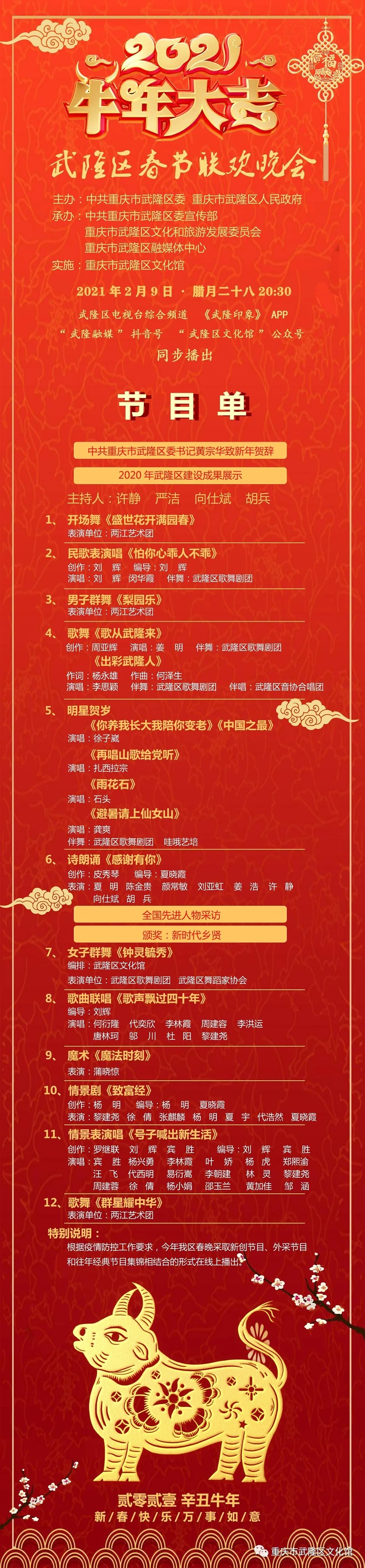 2021年武隆区春节联欢晚会节目单出炉