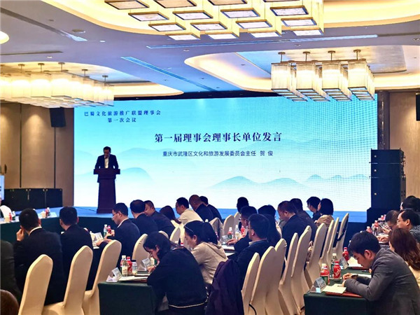 会议宣读并表决通过了《巴蜀文化澳网官方网站推广联盟章程(草案)》及联盟理事会理事、理事长、副理事长、秘书长单位建议名单,武隆区文化澳网官方网站委党组书记、主任贺俊代表第一届理事会理事长单位发言,并宣读《巴蜀文化澳网官方网站推广联盟宣言》。