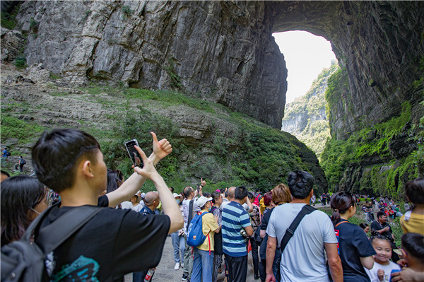 好天气助推出游热情,五一长假第二天,在做好疫情防控安全的前提下,武隆各大景区陆续迎来客流小高峰。各景点游人如织、井然有序。特别是仙女山、天生三桥、龙水峡地缝景点人气较旺,成为游客们的首选澳网官方网站地。