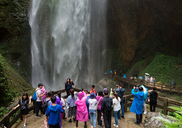 5月3日,五一小长假第三天,被称为“地球最美裂痕”的龙水峡地缝景区,经过前一晚雨水的洗礼后,清新养眼,雾气腾腾,焕然一新,顺着景区流淌的暗河水,以及壮观的银河飞瀑等绝美景观,吸引众多游客驻足围观。