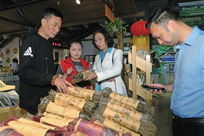 记者在武隆馆看到,展销产品种类繁多,琳琅满目,武隆苕粉、高山茶、酸辣粉、鳅田稻、老腊肉等本地特色产品纷纷亮相。这些新鲜、优质农产品因价格亲民而十分走俏,工作人员卖力吆喝,市民来回挑选,买卖双方都忙得不亦乐乎,好些商品很快就被市民“一抢而光”。