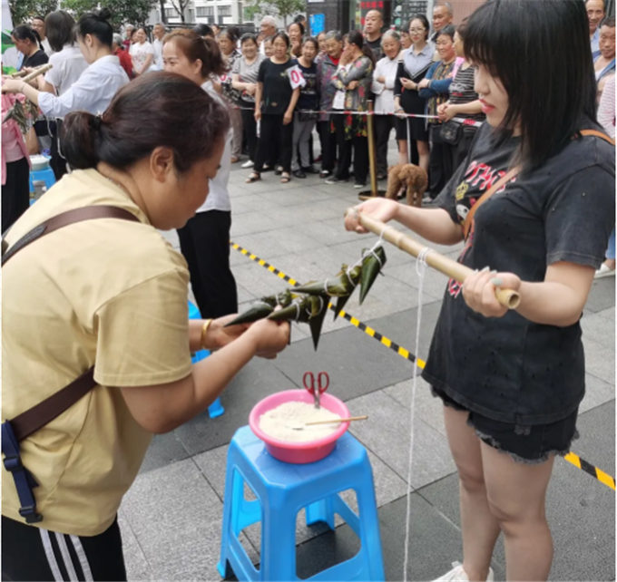 6月9日上午,凤山街道龙湖社区在大木桥公租房小区举行“情浓端午 粽香快乐”端午节活动。