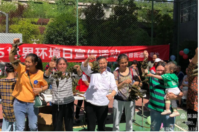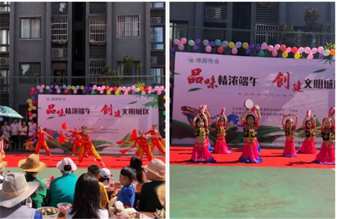 当天,不仅有小孩子们带来的俏皮可爱的文艺汇演活动,还开展了盲人敲锣、套圈、包粽子等一系列趣味游戏以及创文、消防安全、禁毒、防诈骗、垃圾分类等有奖知识竞赛。